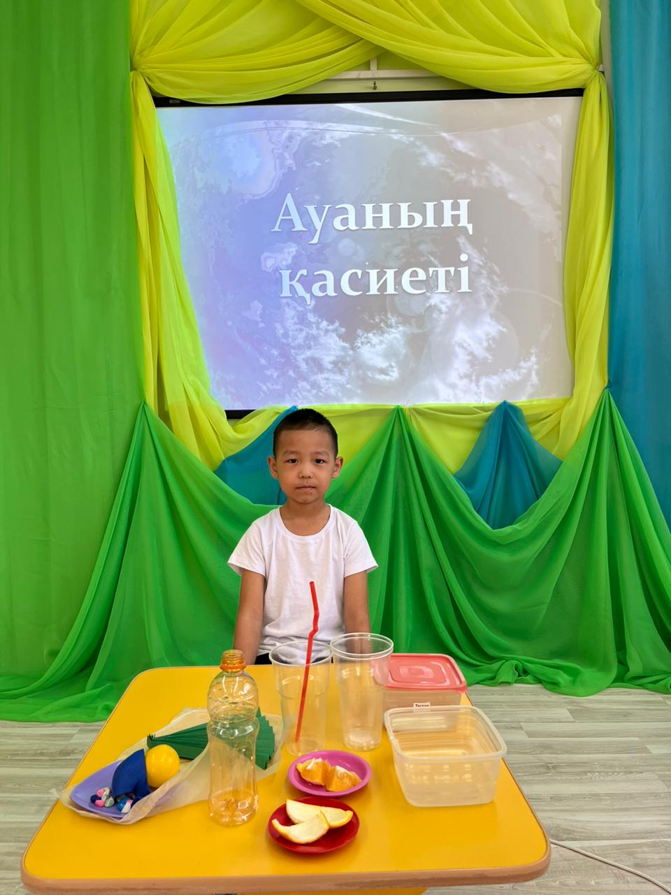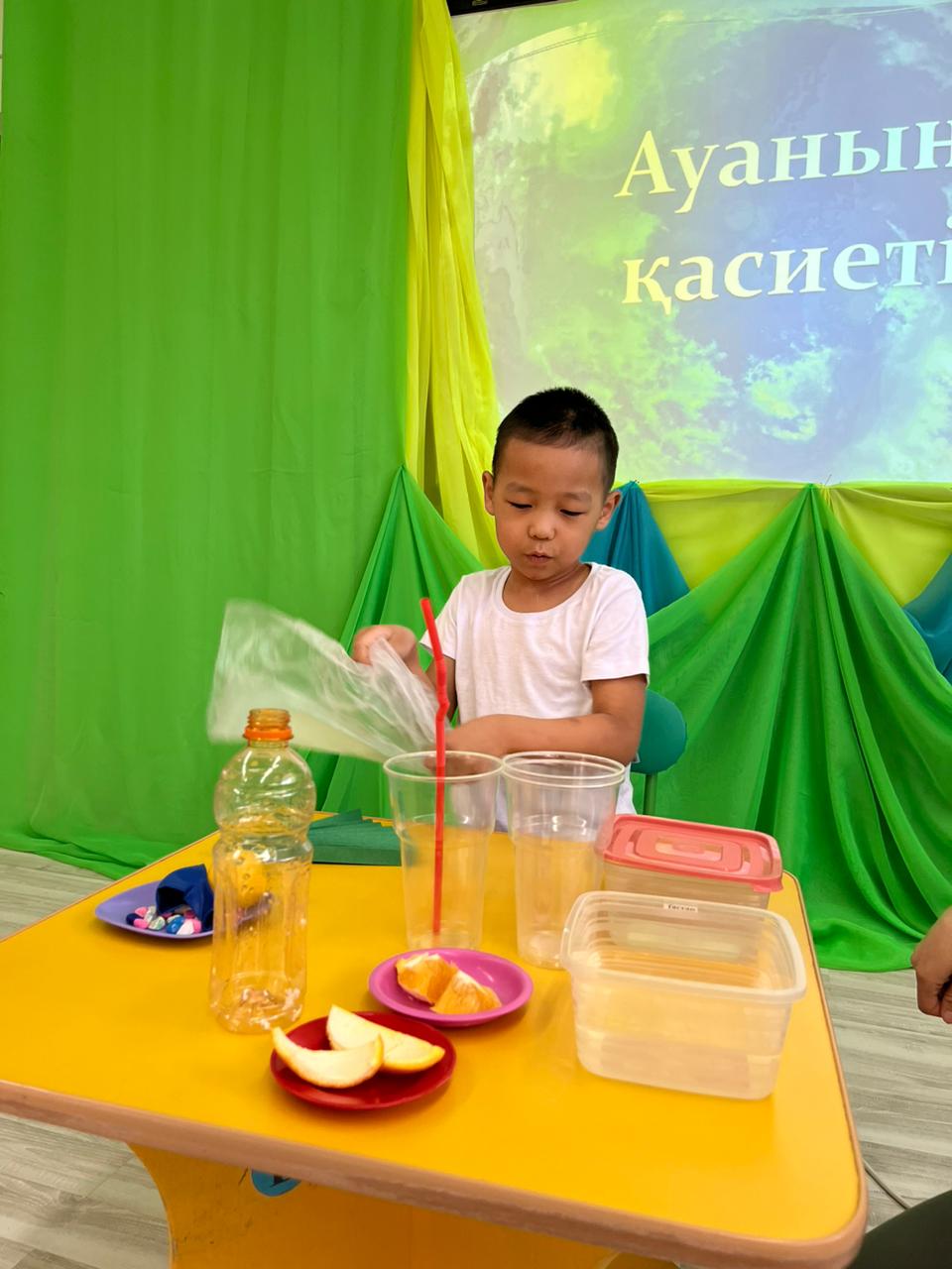 🍒«Жидек» 🍒мектепалды тобының тәрбиеленушісі Қайбар Расул 💫«Ғылым әлеміне бір қадам» атты интеллектуалды сайысқа қатысып, жүлделі екінші орынға ие болды. Біз 💫«Ауаның қасиеті» туралы тәжірбие өткіздік. Мақсаты: балалардың танымдық белсенділігін арттыру. Ауаның адам өмірінде маңыздылығы туралы түсінікті кеңейту. Түрлі тәжірбие 🧪 арқылы ауаның иіссіз, түссіз екенін дәлелдеу болды.
