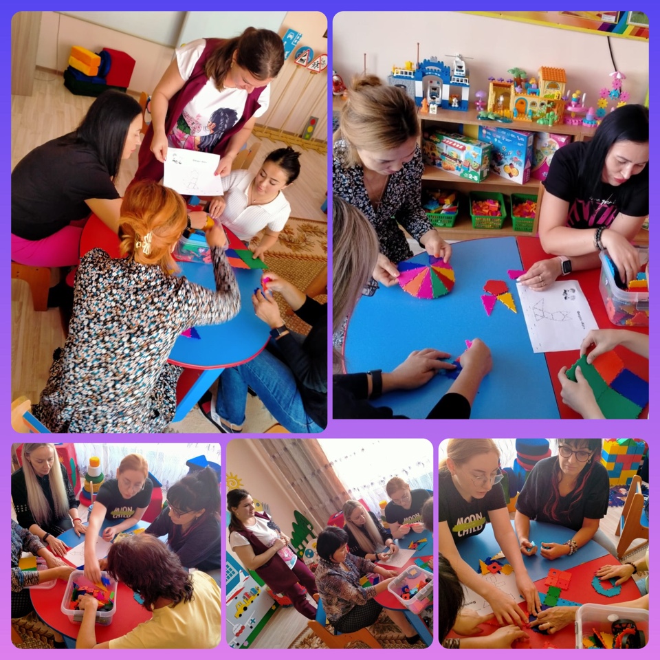 Педагогтер "Фиксиктер "Инженерия елінде"" инновациялық жобасы бойынша "ТИКО-конструкторды мектеп жасына дейінгі балалардың логикалық ойлауларын дамытуға пайдалану" шебер -сыныбын өткізді.