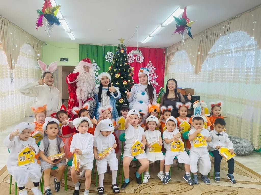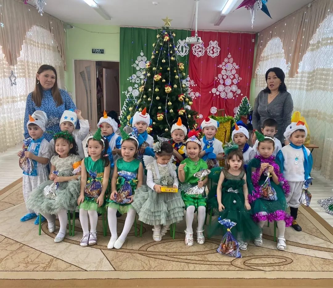 Балалар әдемі, әсем жаңа жылдық киімдерде болды, тақпақ айтылып, өлеңдер оқылды, би билеп шаттық пен көңіл көтерді.