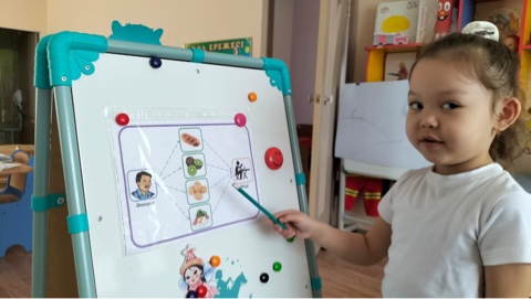 ✨Тіл үйретуде ең басты міндет- балалардың сөйлеу тілін жетілдіру.Балалар тілдің грамматикасын білу арқылы бір-бірімен сөйлесуді, сұрақ қоюды үйренеді. ✨Күнделікті бала өмірінде жиі қолданыста жүрген сөздерді пайдалана отырып сөйлесу тілді тез меңгеруге мүмкіндік береді. ✨Ойын мен көрнекілік – балалардың тілді үйренуге деген қызығушылығын арттыру мақсатында ересек 🌟«Жұлдыз» тобының тәрбиеленушілерінің сөздік қорларын толықтыру барысында әр түрлі тиімді тәсілдер жүргізілуде. Тәрбиеленушілер берілген схема арқылы толық және дұрыс сөйлеп үйренеді. 🙎♂️🙎♀️Балаларға тілді ойындар мен көрекіліктер арқылы үйреткен тиімді болып табылады. Тәрбиеші: Шаяхметова Л.Н.
