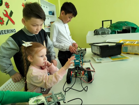 ✨Инженерлік ойлауды дамыту, балабақша мен мектептің шығармашылық қабілеті мен қабылдауын арттыру мақсатында КМҚК √3 балабақшаның "Көбелек"тобының тәрбиеленушілері Ы. Алтынсарин атындағы мамандандырылған мектеп -интернаты оқушыларының робототехника бойынша жүмыстарымен танысты.