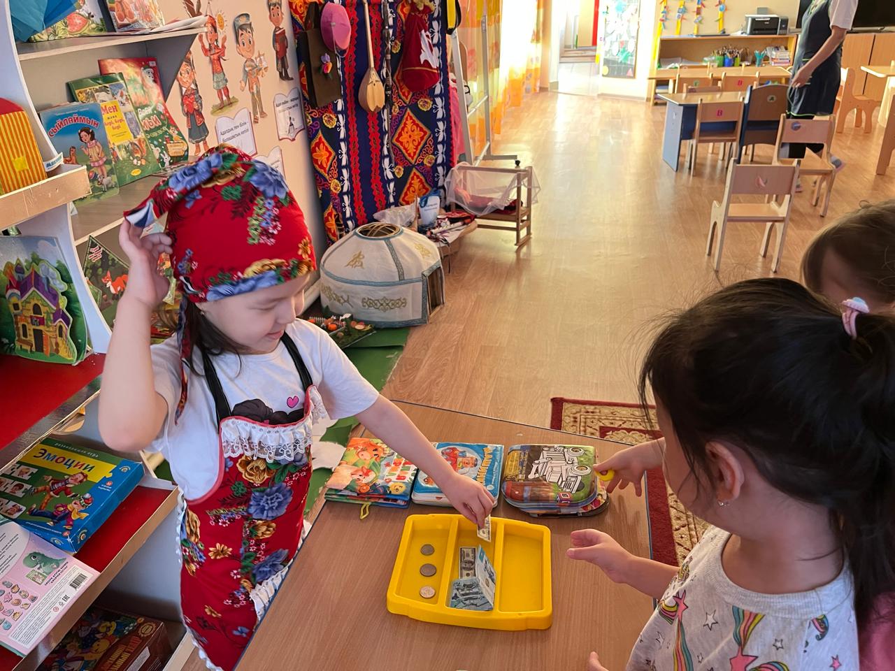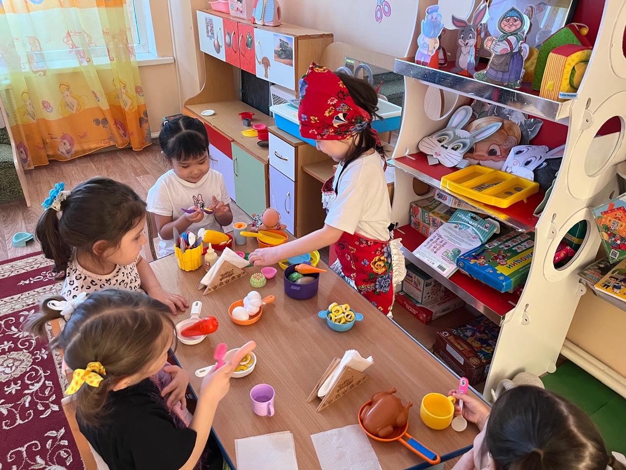 Мектепке дейінгі ересек ,,Балапан,,тобында сюжеттік рөлдер арқылы балалар ,әлеуметтік дағдыларын дамытады, сөздік қорларын көбейтіп өздерінің ойдан шығарған сценариларын жүзеге асырады.Ойын барысында эмоционалды дамуына ықпал етіп ,балалар рөлдер арқылы сөйлеу ырғағында жаңа сөздер меңгеріп ,сөйлеу мәдениетін дамытады. Ұжымда жұмыс істеуді үйреніп ,топтық ойындар арқылы бірлесіп әрекет етуге қалыптасады.