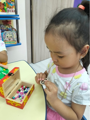 Балалар өздері қолдан моншақтарды жіпке тізіп алқа, білезік жасады, бұл жерде сәндік пен қоса ұсақ қол маторикасын дамыту мақсатымын жүргізілген іс-шара балаларға жаксы көңіл күй силады.