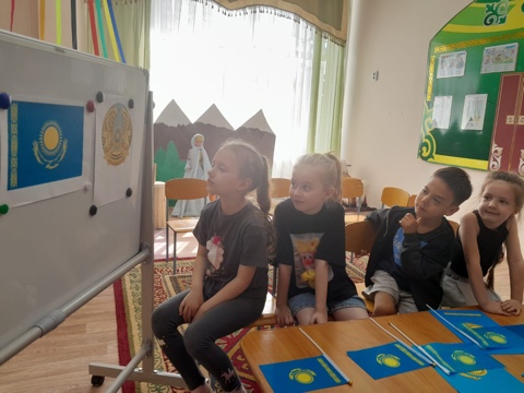 ✨ Балалар ҚР - ның рәміздері әнұран, ту, елтаңба туралы түсінік алды. Туған ел, Отан туралы білімдерін кеңейтті.