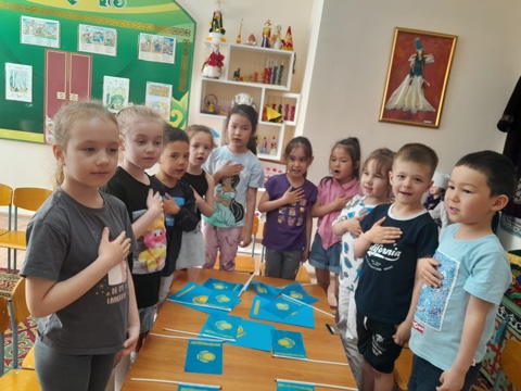✨Мектепалды "Солнышко" тобының тәрбиеленушілерімен "1 маусым -балаларды қорғау күніне" орай 4 маусым ҚР рәміздер күні тақырыбында танымдық іс-шара өтті.