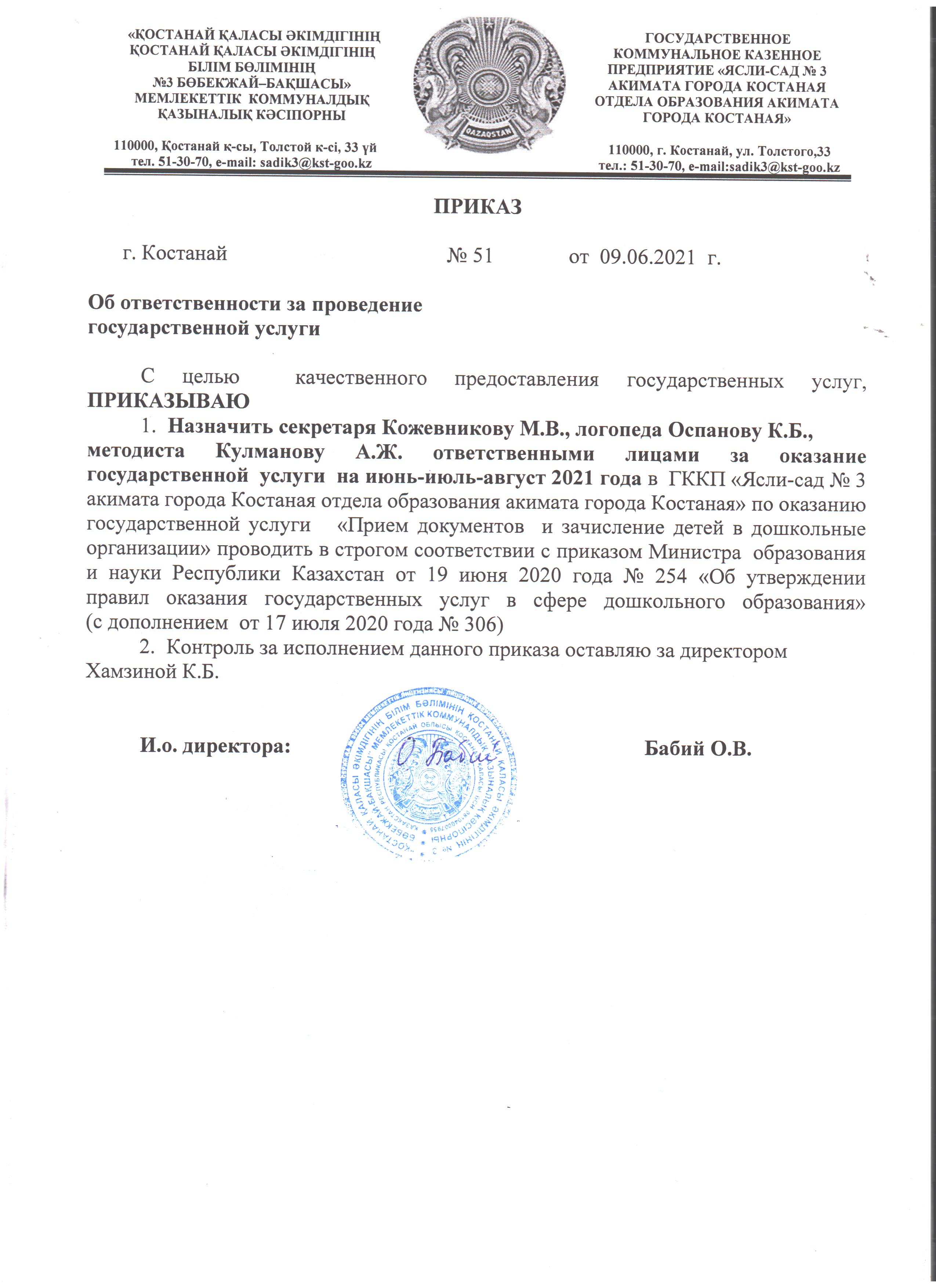 Коммунальное государственное казенное предприятие «Ясли-сад № 3» отдела образования города Костаная» Управления образования акимата Костанайской области