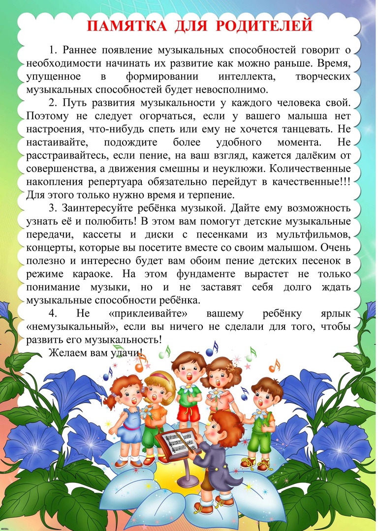 Рекомендации музыкального руководителя для родителей чьи дети не посещают детский сад