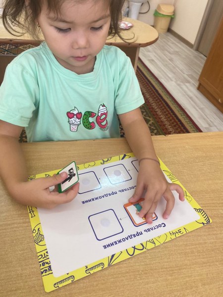 В ясли-саду 3 на логопедических занятиях логопед использует фразовый конструктор который необходим для запуска речи на этапе становления фразы, а также для развития уже имеющейся фразовой речи у ребенка. Также он очень полезен для развития связи слов и сочетания их друг с другом.