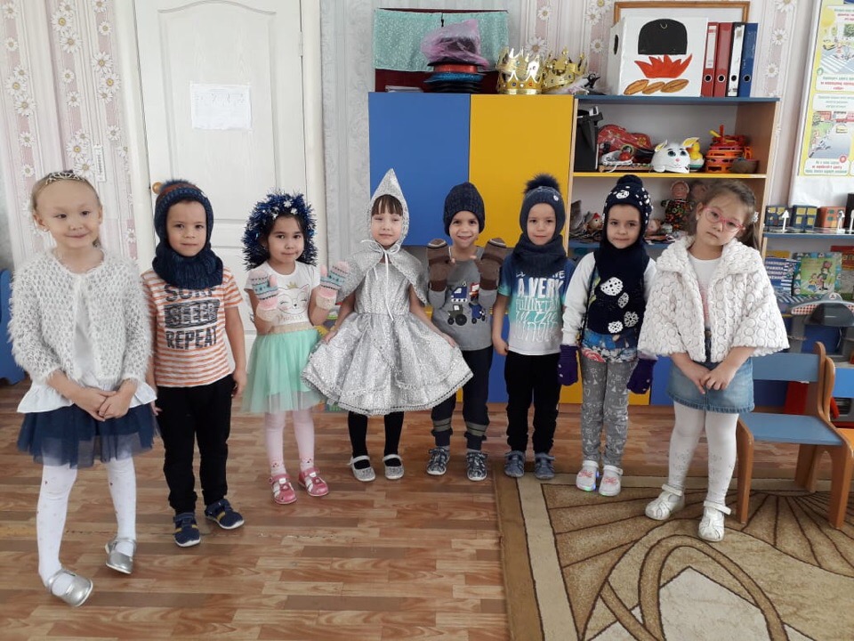Дети пришли в зимней одежде. Все дети разоделись как матушка Зима. Играли с детьми в зимние игры, выполняли пальчиковые упражнения.