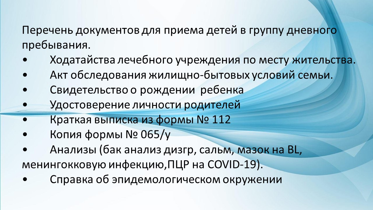 - анализы (бак анализ дизгр, сальм, мазок на BL, менингокковую инфекцию, ПЦР на COVID-19);
