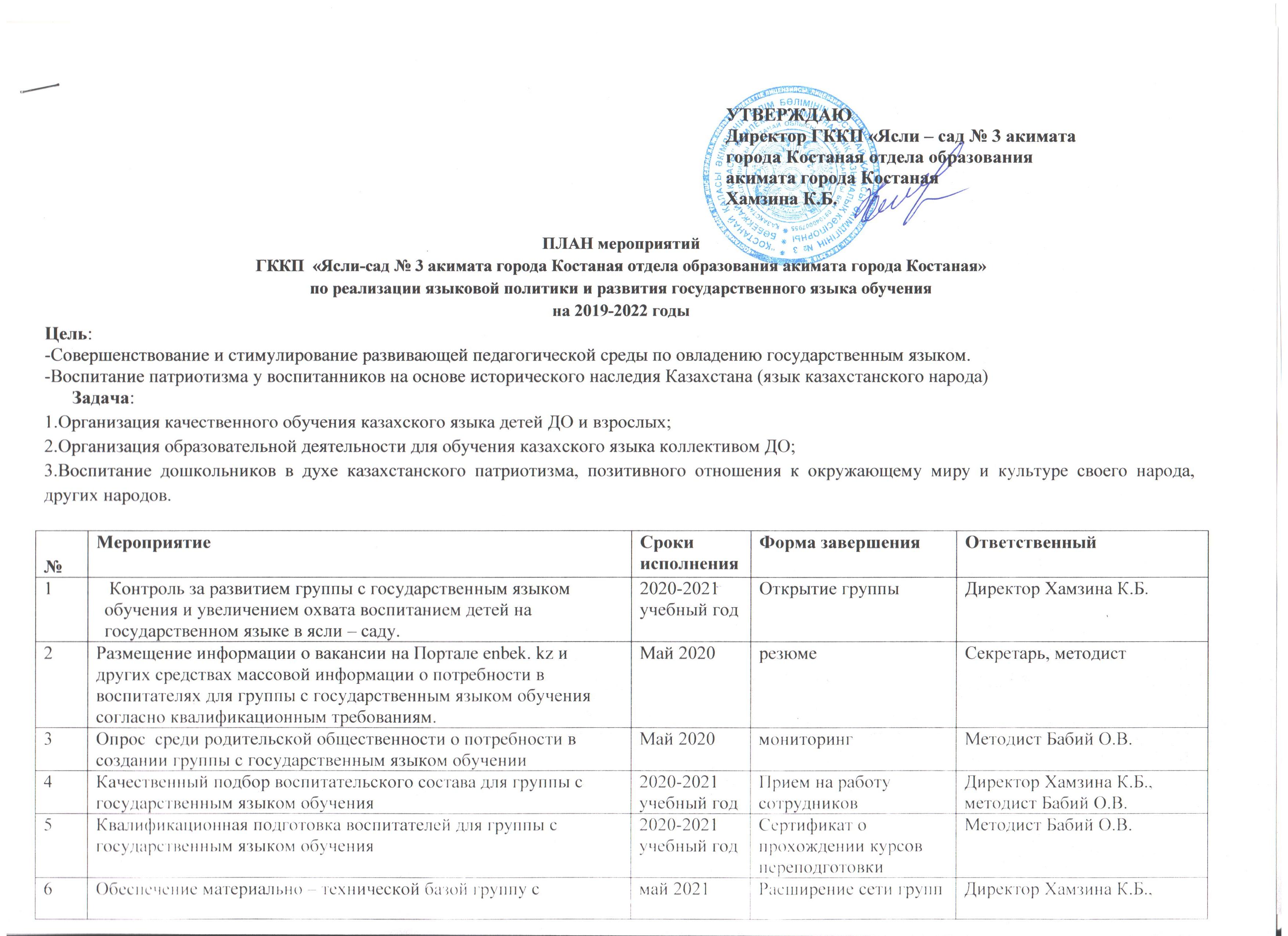 Коммунальное государственное казенное предприятие «Ясли-сад № 3» отдела образования города Костаная» Управления образования акимата Костанайской области