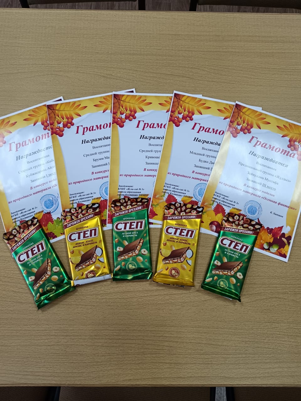КГКП «Ясли - сад № 3» прошел смотр - конкурс поделок из природного материала «Осенняя фантазия» среди всех возрастных групп, с целью активизации совместного творчества воспитанников и их родителей (законных представителей); передача и накопления опыта эстетического отношения к миру, формирования экологической культуры, воспитание духовно богатой личности.