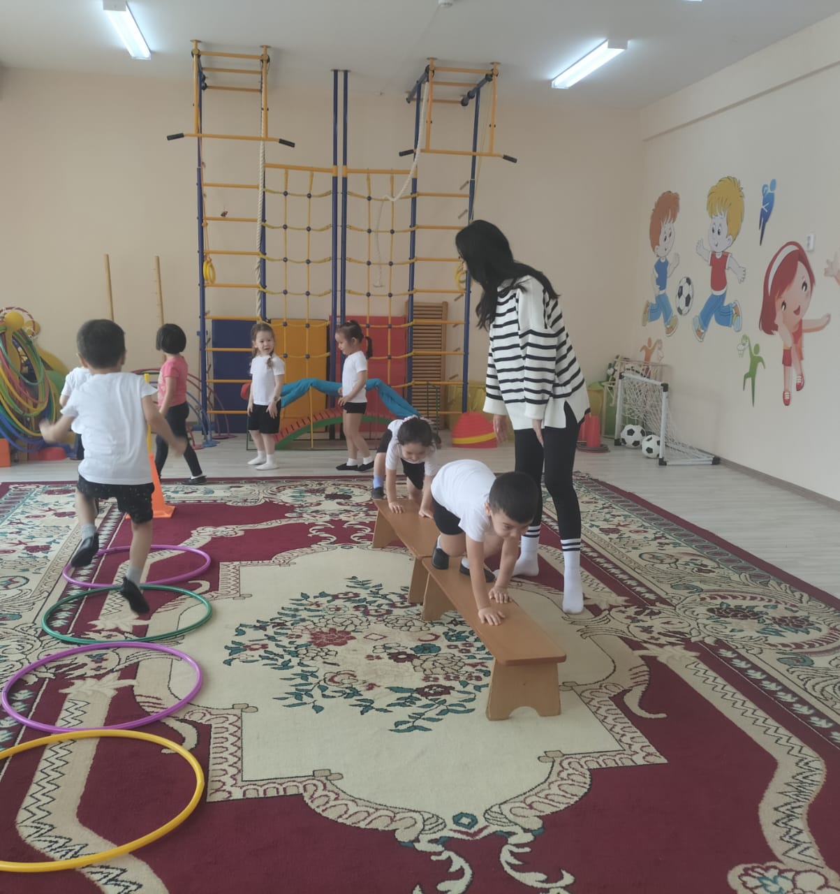 А так же Ардак Жумановной была проведена организованная деятельность по физической культуре в группе «Солнышко», «Жұлдыз», где родители с детьми получили положительные эмоции при совместной двигательной активности, выполняя основные виды движения