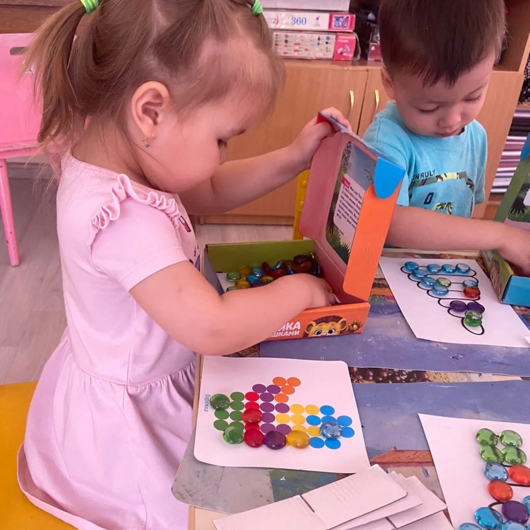 🟢В младшей группе "Ласточка" детям очень интересно играть с одним из нетрадиционных приемов обучения - камушки "Марблс".